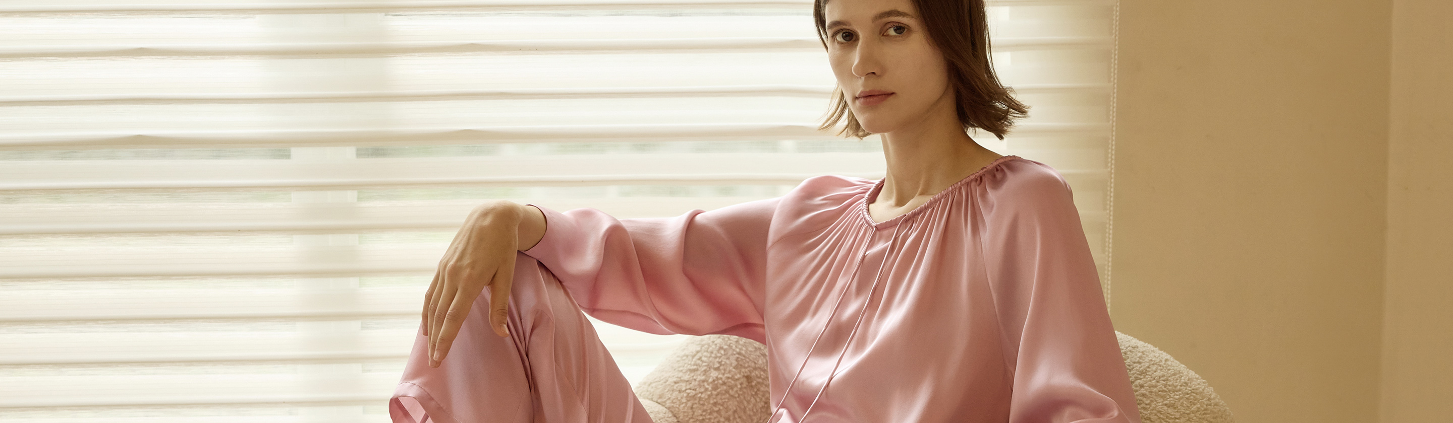 Iridessa Silk Pajama Top With Drawstring Neckline